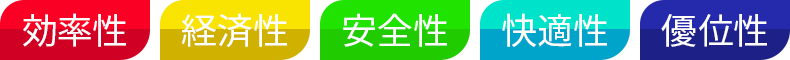 「効率性」「経済性」「安全性」「快適性」「優位性」という5つの重要な価値を納品いたします。