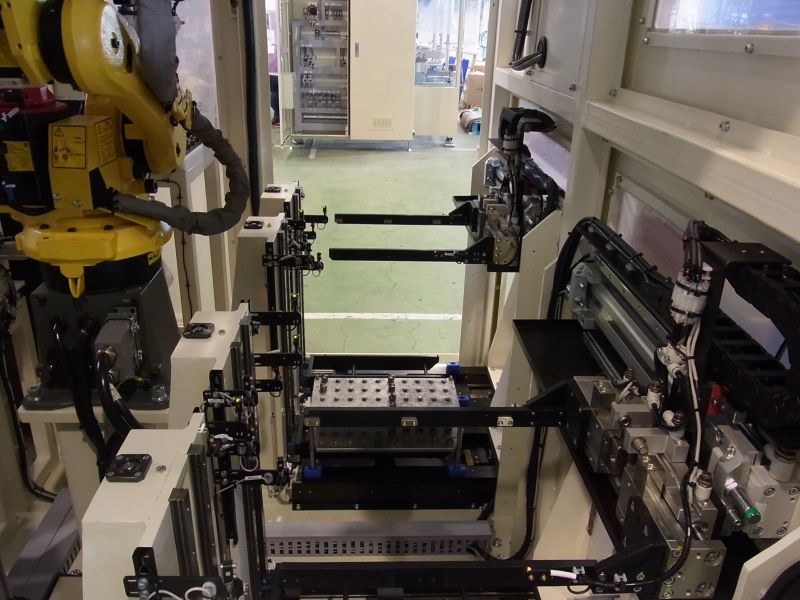 人手から自動装置へ転換を図り、省スペース、作業高速化を実現。
